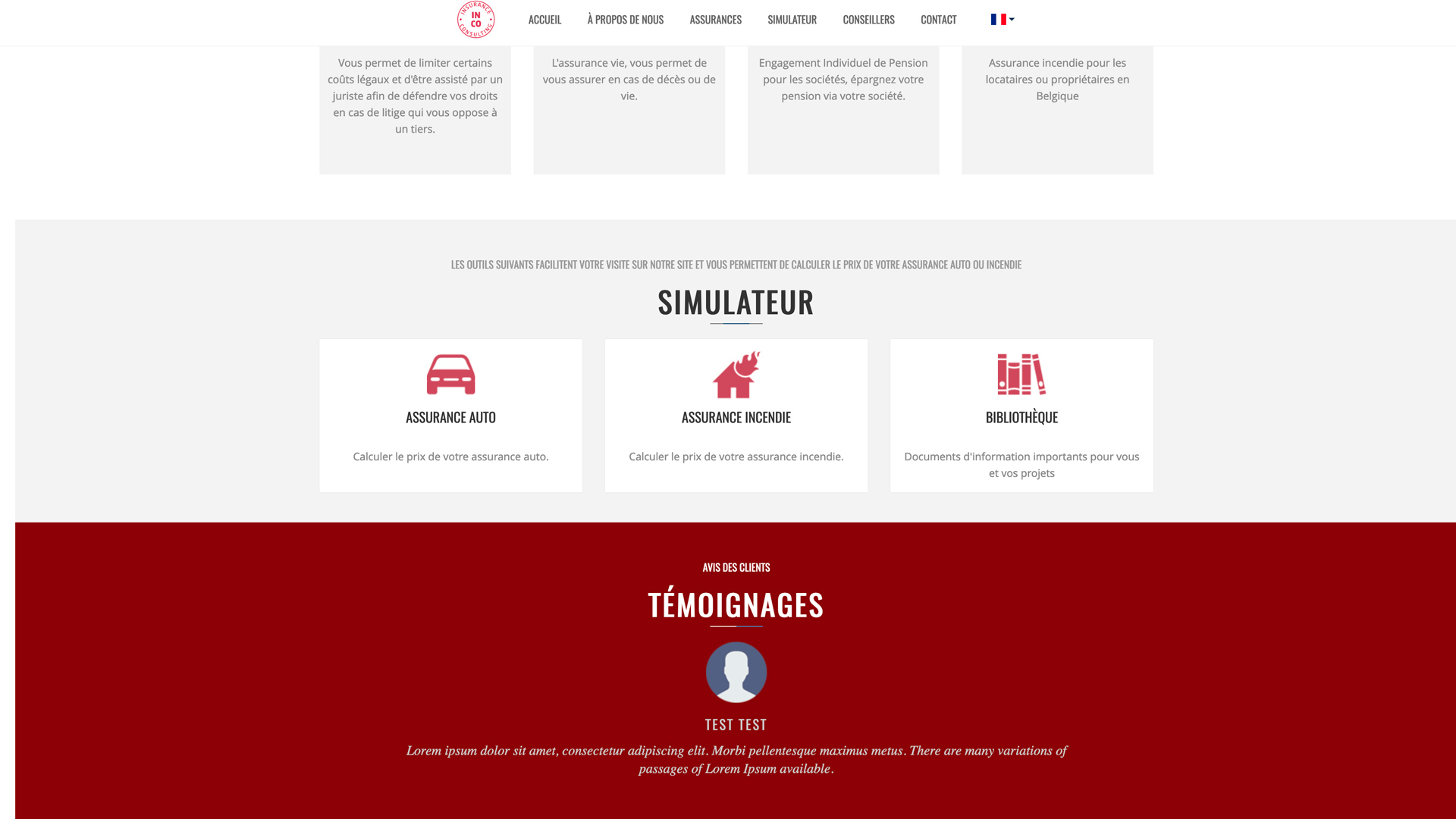 Site de prezentare pentru In & Co Insurance cu mai multe implementări API și calcule diferite.